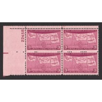 Znaczek w czwórce z marginesem arkusza zawierającym numer kontrolny matrycy [ang. plate block].