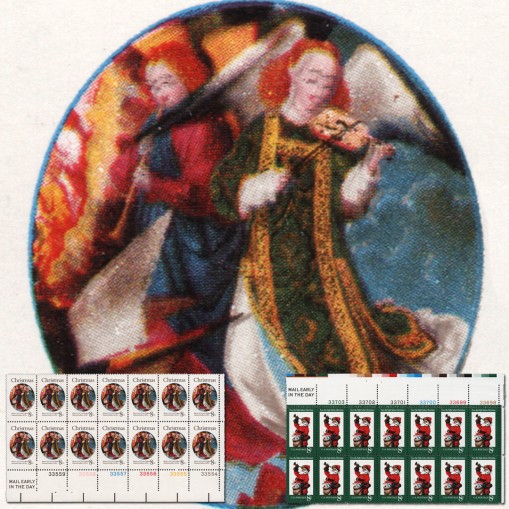 Na znaczkach widnieje święty Mikołaj oraz anioły ze średniowiecznego obrazu „Maria Wniebowzięta – Królowa Niebios” anonimowego flamandzkiego malarza zwanego Mistrzem Legendy św. Łucji.