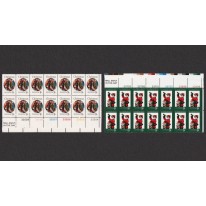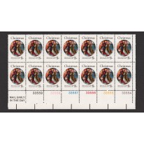 Seria we fragmentach arkuszy po czternaście znaczków z marginesami zawierającymi numery kontrolne matrycy [ang. plate block].