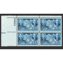 Znaczek w czwórce z marginesem arkusza zawierającym numer kontrolny matrycy [ang. plate block].