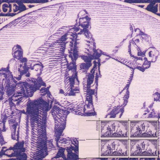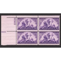 Znaczek w czwórce z marginesem arkusza zawierającym numer kontrolny matrycy [ang. plate block].