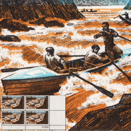 Na znaczku widnieje łódź Powella na rzece Kolorado.