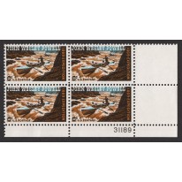 Znaczek w czwórce z marginesem arkusza zawierającym numer kontrolny matrycy [ang. plate block].