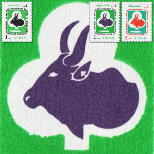Na znaczkach widnieje krowia głowa i strzykawka.