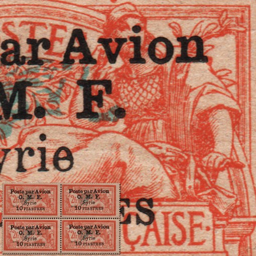 Znaczek w czwórce wydany pierwotnie we Francji, tym razem z nadrukiem „Poste par Avion O.M.F. Syrie” i przedrukiem nominału. Znaczek ten wydano w Serii rok wcześniej jako znaczek obiegowy, potem zaś dodrukowano „Poste par Avion” (poczta lotnicza).