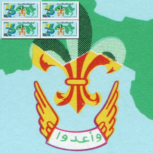 Na znaczku widnieje logo arabskich skautów i mapa krajów arabskich.