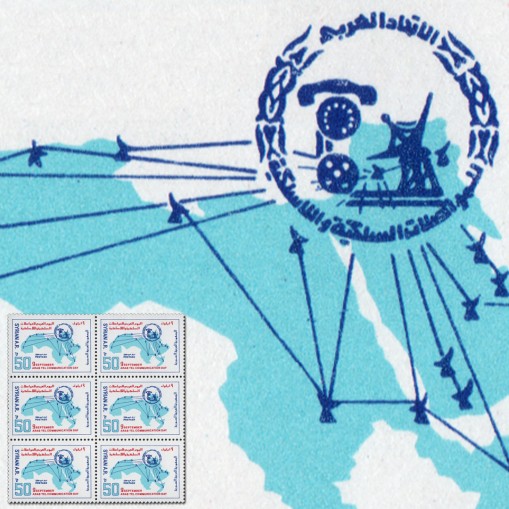 Znaczek w szóstce upamiętniający Arabski Dzień Telekomunikacji.