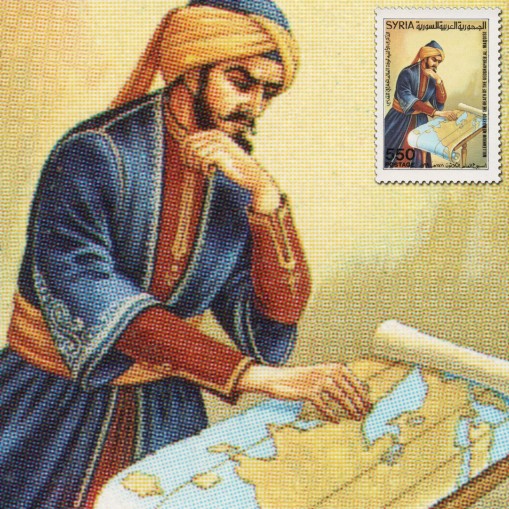 Znaczek upamiętniający tysięczną rocznicę śmierci Al-Mukaddasi, arabskiego podróżnika i geografa.