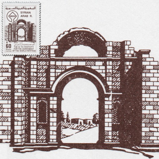 Na znaczku widnieje brama w starożytnym mieście Bosra.