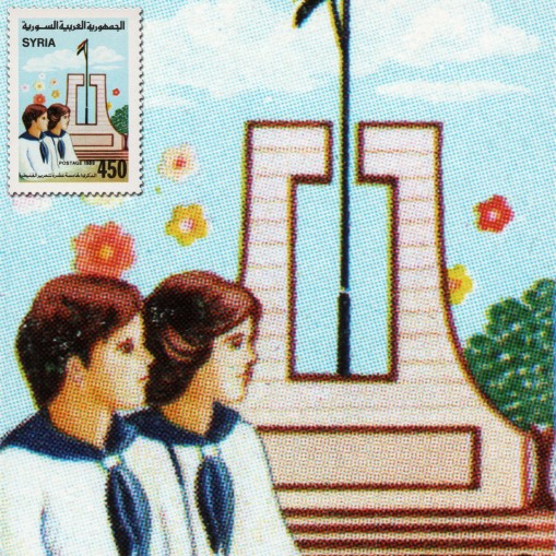 Znaczek upamiętniający 15. rocznicę wycofania się wojsk izraelskich z miasta Al-Kunajtira leżącego przy północnych stokach Wzgórz Golan. W I połowie XX wieku miasto było prężnie rozwijającym się ośrodkiem przemysłowym i handlowym. W 1967 roku w wyniku wojny sześciodniowej znalazło się ono pod okupacją Izraela. Syria odzyskała przejściowo kontrolę nad Al-Kunajtirą w 1973 roku w czasie wojny Jom Kipur.
