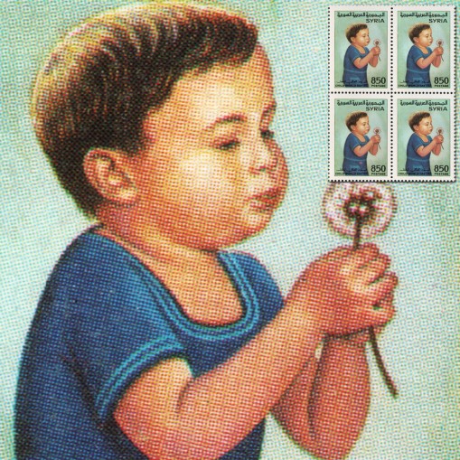 Na znaczku widnieje chłopiec z dmuchawcem.