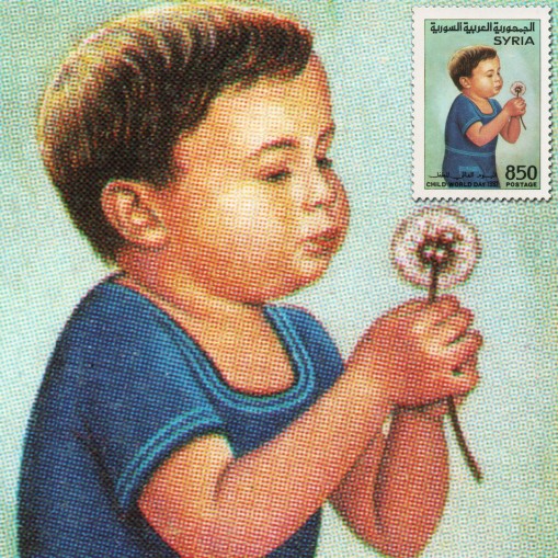 Na znaczku widnieje chłopiec z dmuchawcem.