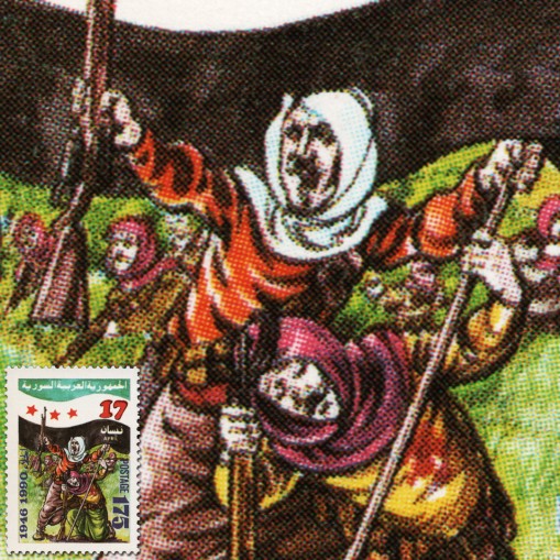 Znaczek upamiętniający 44. rocznicę wycofania się z Syrii wojsk brytyjskich i francuskich.