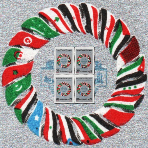 Znaczek w czwórce wydany z okazji 25-lecia Arabskiego Związku Pocztowego.
