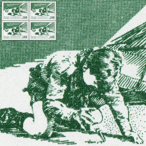 Znaczek w czwórce upamiętniający 75-lecie ruchu skautowego.
