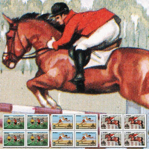 Na znaczkach widnieją kolejno: piłka nożna, bieg i jeździectwo.