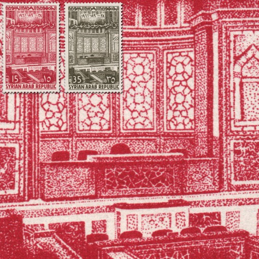 Na znaczkach widnieje izba posłów syryjskiego parlamentu.