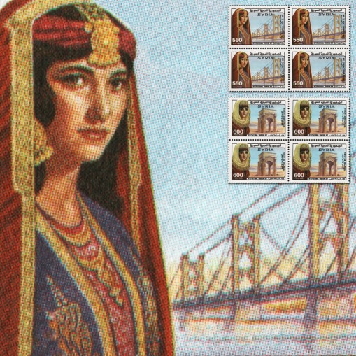Na znaczkach widnieją kobiety w strojach tradycyjnych, a także most na Eufracie w Dajr az-Zaur i starożytny tetrapylon w Latakii.