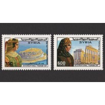 Na znaczkach widnieją kobiety w strojach tradycyjnych, a także zamek Kalat Dżabir i ruiny starożytnej świątyni Baalszamina w Palmyrze.