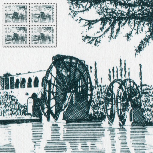 Znaczek obiegowy w czwórce, na którym widnieją koła nawadniające, tzw. norie, wybudowane przy użyciu drewna, bez zastosowania gwoździ. Najstarsze norie w Hamie powstały nawet w 1100 r. p.n.e. Są jedną z głównych atrakcji turystycznych miasta Hama, słyną z wydawania charakterystycznych dźwięków podczas kręcenia się i czerpania wody z koryta Orontesu.