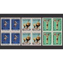 Na znaczkach widnieje tenis, zapasy i podnoszenie ciężarów.