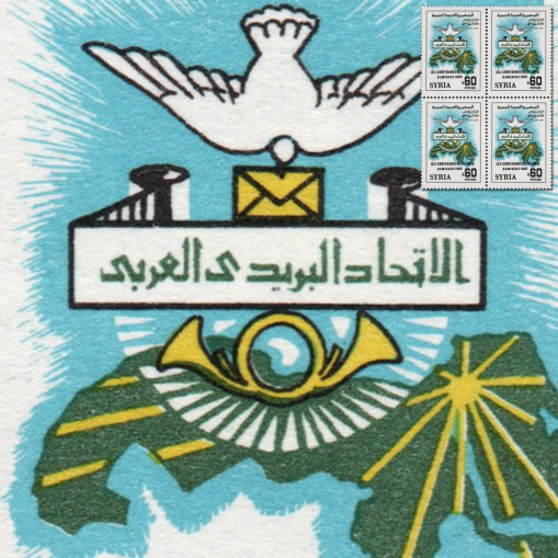 Znaczek w czwórce upamiętniający 12. kongres Arabskiego Związku Pocztowego.