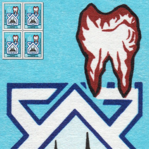 Znaczek w czwórce upamiętniający międzynarodowy kongres dentystów na Bliskim Wschodzie.