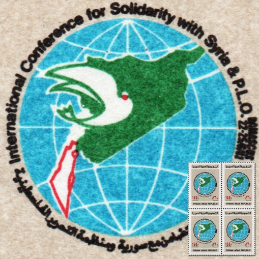 Znaczek w czwórce upamiętniający konferencję poświęconą jedności z Organizacją Wyzwolenia Palestyny.