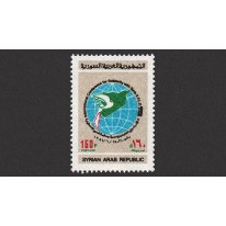 Na znaczku widnieje kula ziemska i gołąbek pokoju.