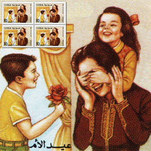 Znaczek w czwórce wydany z okazji Dnia Matki.
