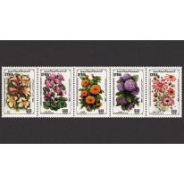 Na znaczkach widnieją różne gatunki kwiatów, m.in. lilie, cyklameny i nagietki.