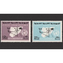 Na znaczkach widnieją instrumenty do pomiaru wiatru i mapa pogodowa Syrii.