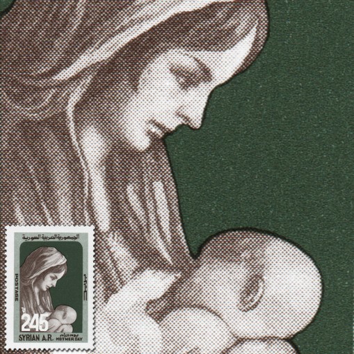 Na znaczku widnieje matka z dzieckiem.