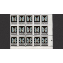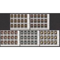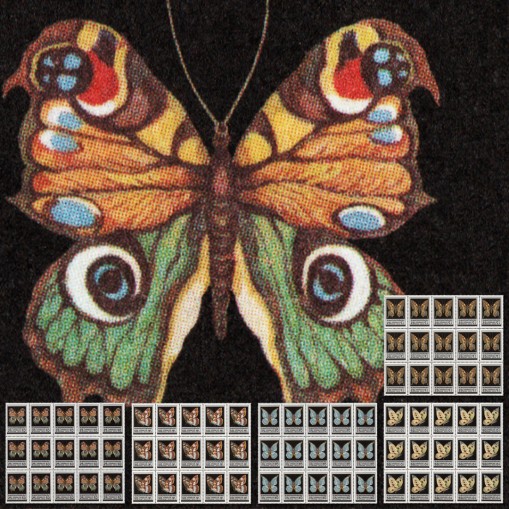 Seria we fragmentach arkuszy po piętnaście znaczków, na których widnieją następujące gatunki motyli: paź królowej, rusałka pawik, pokłonnik osinowiec, mieniak tęczowiec i motyl z rodzaju Parnassius.