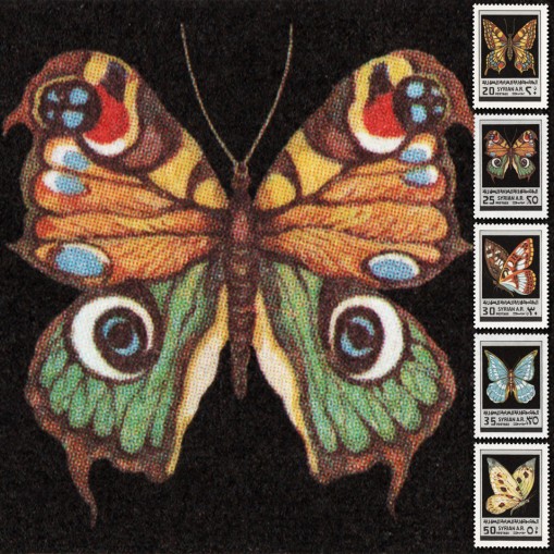 Seria, na znaczkach której widnieją następujące gatunki motyli: paź królowej, rusałka pawik, pokłonnik osinowiec, mieniak tęczowiec i motyl z rodzaju Parnassius.