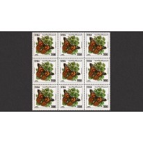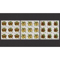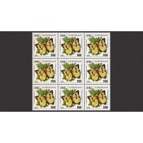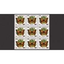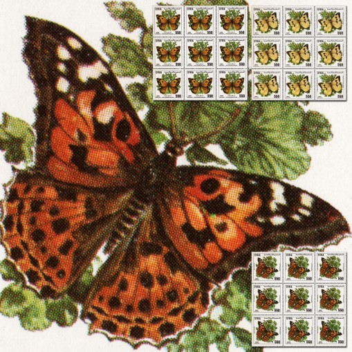 Seria we fragmentach arkuszy po dziewięć znaczków, na których widnieją motyle, m.in. rusałka osetnik.