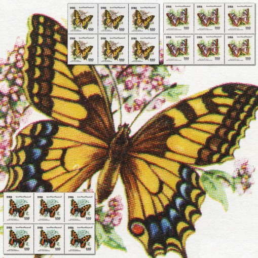 Seria w szóstkach, na znaczkach której widnieją motyle, m.in. paź królowej i rusałka pokrzywnik.