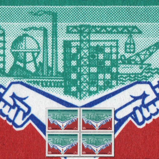 Znaczek w czwórce wydany z okazji Dnia Pracy.
