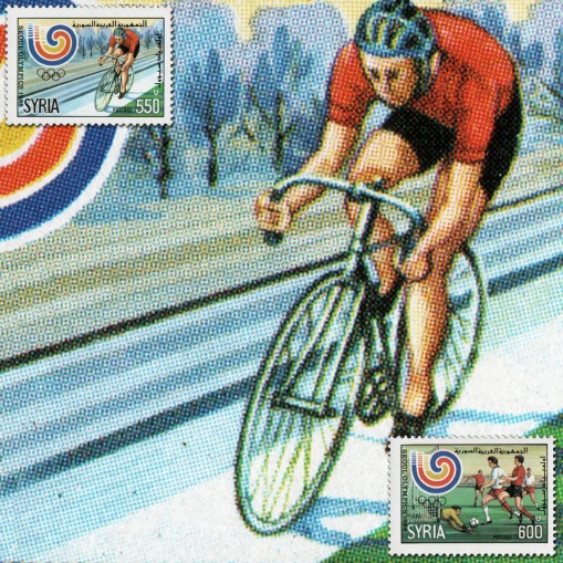Na znaczkach widnieje kolarstwo i piłka nożna.