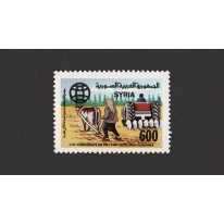Na znaczku widnieje orka przy pomocy wołu zaprzężonego w pług i traktora.