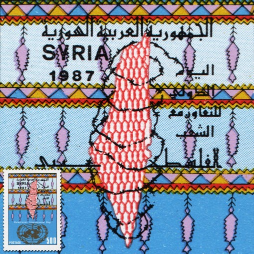 Znaczek upamiętniający międzynarodowy Dzień Solidarności z Palestyną.