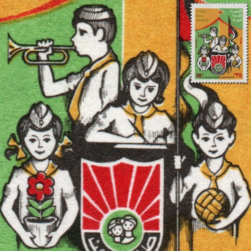 Znaczek promujący pionierską organizację młodzieżową partii Baas.