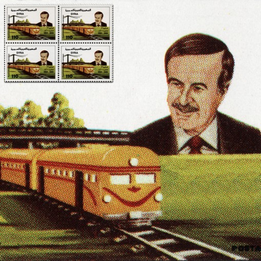 Na znaczku widnieje pociąg i prezydent Hafiz al-Asad.