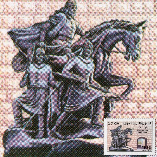 Znaczek upamiętniający 47. rocznicę wycofania się z Syrii wojsk brytyjskich i francuskich.