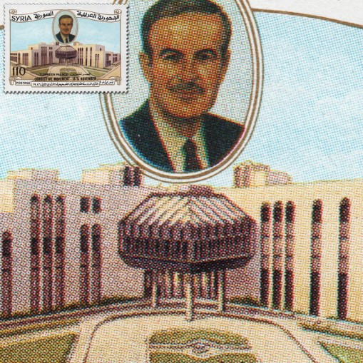 Na znaczku widnieje prezydent Hafiz al-Asad i pałac w Damaszku.