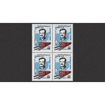 Znaczek w czwórce upamiętniający 11. rocznicę wojskowego przewrotu przeprowadzonego przez Hafiza al-Asada i jego zwolenników w nocy z 12 na 13 listopada 1970.
