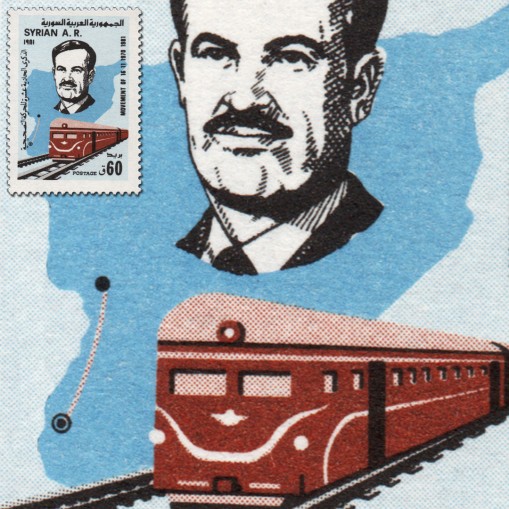 Znaczek upamiętniający 11. rocznicę wojskowego przewrotu przeprowadzonego przez Hafiza al-Asada i jego zwolenników w nocy z 12 na 13 listopada 1970.