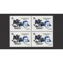 Znaczek w czwórce upamiętniający 9. rocznicę wojskowego przewrotu przeprowadzonego przez Hafiza al-Asada i jego zwolenników w nocy z 12 na 13 listopada 1970.