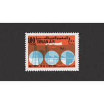 Znaczek upamiętniający 10. rocznicę wojskowego przewrotu przeprowadzonego przez Hafiza al-Asada i jego zwolenników w nocy z 12 na 13 listopada 1970.