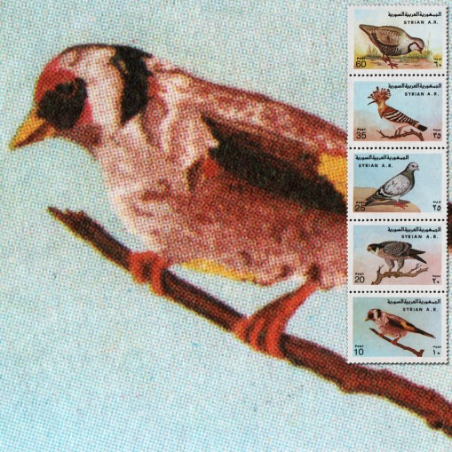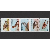 Seria w pasku, na znaczkach której widnieją następujące gatunki ptaków: szczygieł, sokół wędrowny, gołąb skalny, dudek i góropatwa azjatycka.